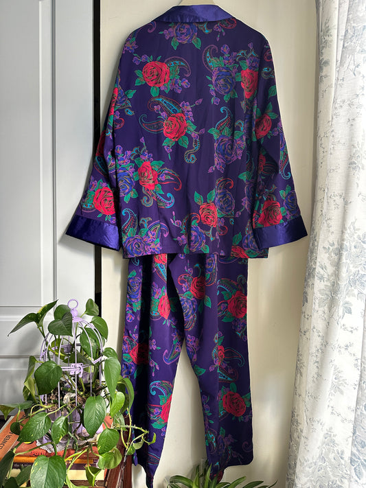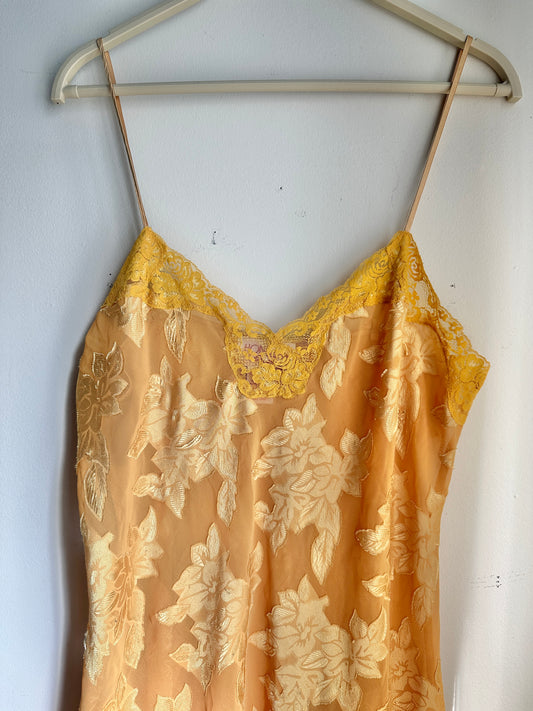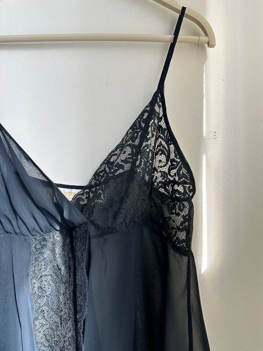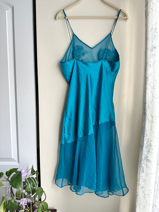 Vintage 90’s Blue Sheer Paneled Floral Slip - M