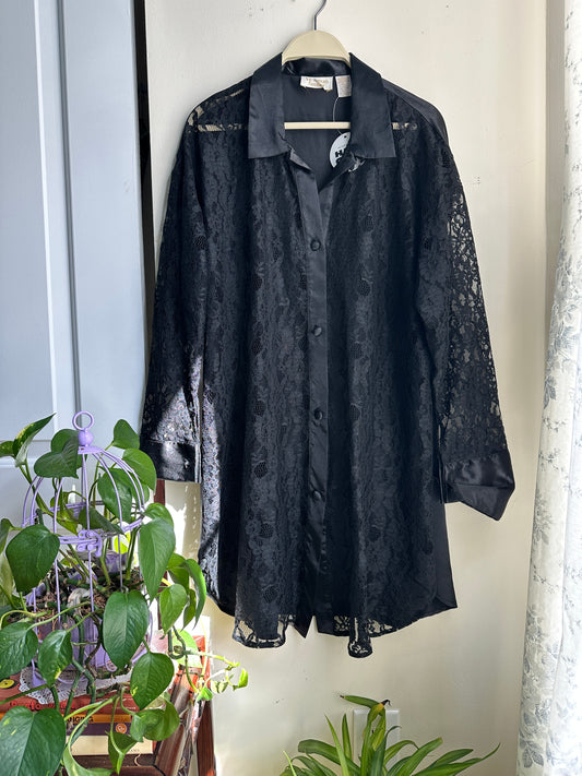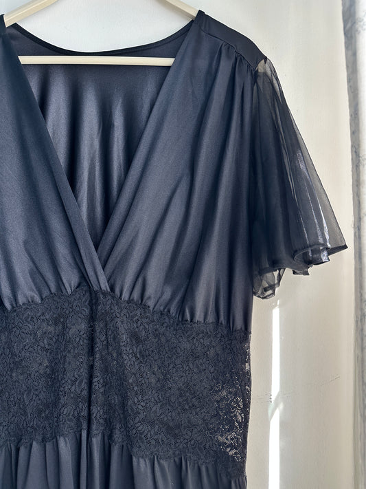 Vintage Black Lace Flutter Sleeve Maxi - L/XL