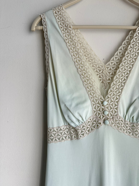 Vintage Pale Sage Green Lace Button Gown - M/L